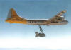 BOEING B-29 "MONSTRO" & MC DONNELL XF-85 GOBLIN - USA 1948 - MAQUETTE ACADEMY & MPM Le XF-85 a été conçu comme un chasseur parasite capable d'être transporté dans la soute d'un B-36. Les essais du système d'accroche furent réalisé avec un B-29 modifié surnommé "Monstro". Le programme n'aboutit pas et le Goblin fut abandonné au profit du F-84F. Un montage dans le cadre d'une série sur les utilisations du B-29 pour une série d'études de prototypes après-guerre. La principale difficulté a été de comprendre le système pendulaire très complexe à partir de quelques photos. Conçu pour être logé dans la soute d'un bombardier B-36, le Goblin reste à ce jour le plus petit chasseur à réaction au monde. Construit à deux exemplaires, ils vont réaliser une série d'essais à la fin des années 40 accroché à un trapèze sous un B-29. Par la suite des essais seront réalisés avec des F-84 sous un B-36. Une maquette MPM ancienne et peu détaillée, difficile à monter à cause de la petitesse du modèle