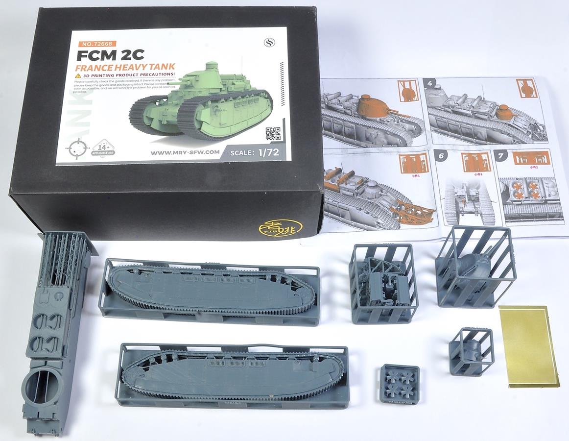 FCM 2C - FRANCE 1940 - RÉSINE 3D SS-MODEL Conçu à la fin de la grande guerre, le FCM 2C était un véritable monstre de 68 tonnes qui ne sera construit qu'a partir de 1921. Dix exemplaires furent construits, chacun baptisé du nom d'une région française. Les huit encore en service en mai 1940 ne participerons pas aux combats. Un kit 3D d'excellente qualité et d'un prix très abordable pour un kit de cette taille.