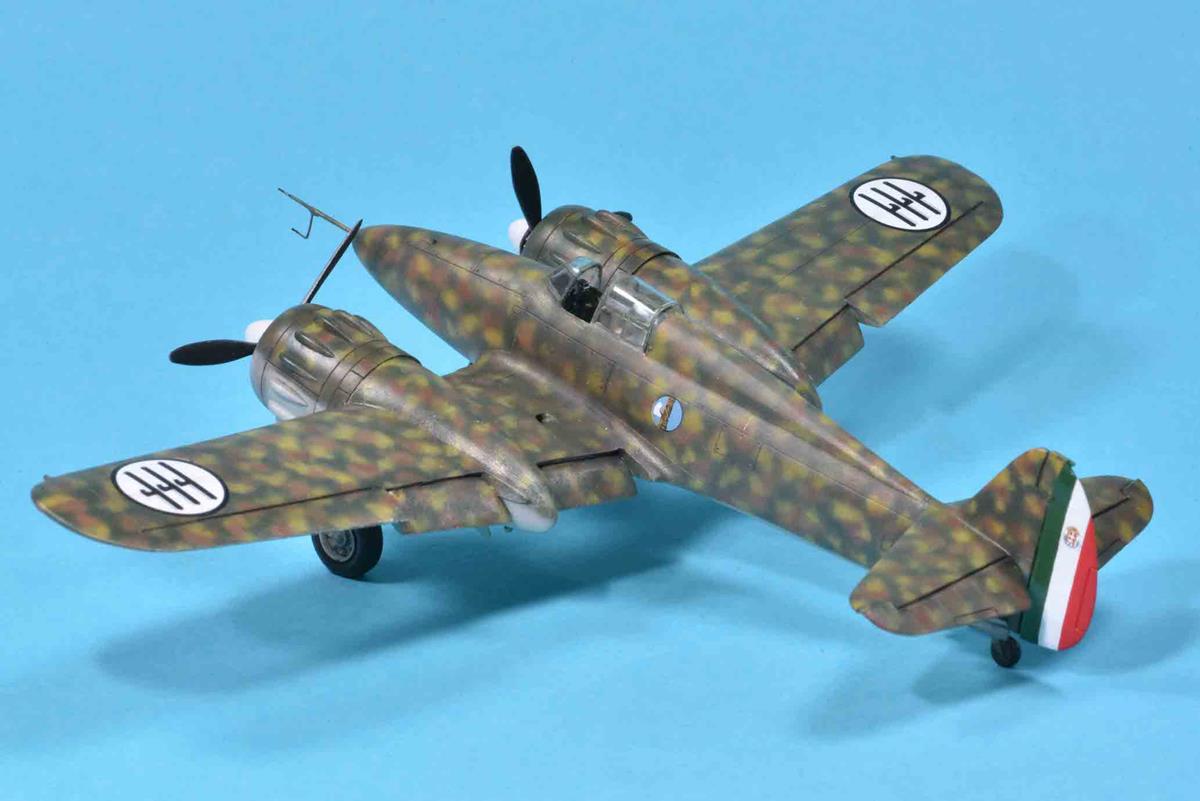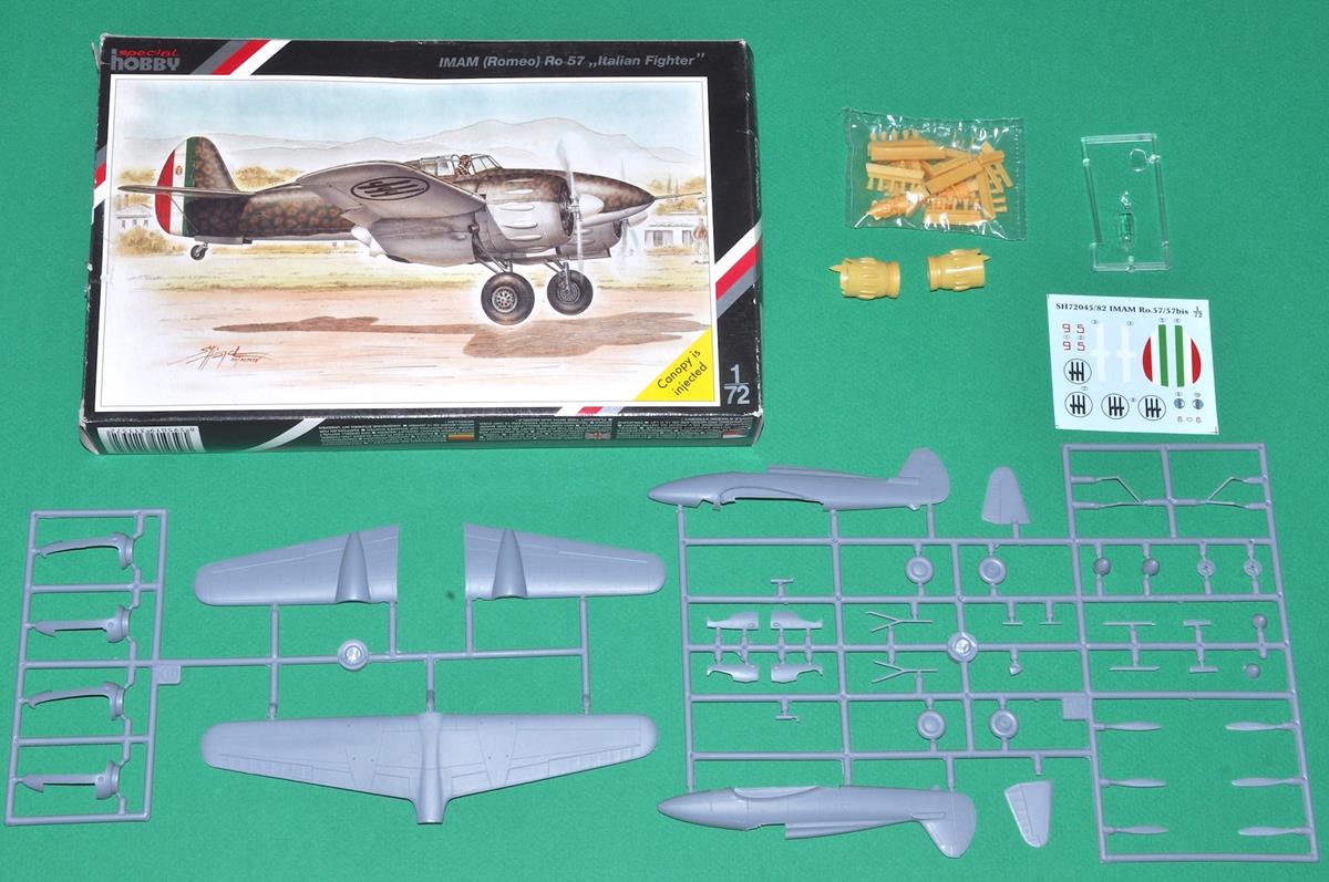 IMAM Ro-57 Prototype MM-407 - ITALIE 1939 - Special Hobby Le Ro-57 fut conçu comme un chasseur bimoteur. Il était rapide et puissant malgré son armement composé de seulement deux mitrailleuses de 12,7mm. Premier avion italien équipé d'un longeron d'ailes métallique, il sera produit en série en 1943 (Ro-57bis) comme bombardier en piqué avec des performances médiocres. Une maquette SH plutôt ratée, la forme des ailes est incorrecte et de nombreux détails ne correspondent pas au prototype MM-407 mais à l'avion de série Ro-57bis.