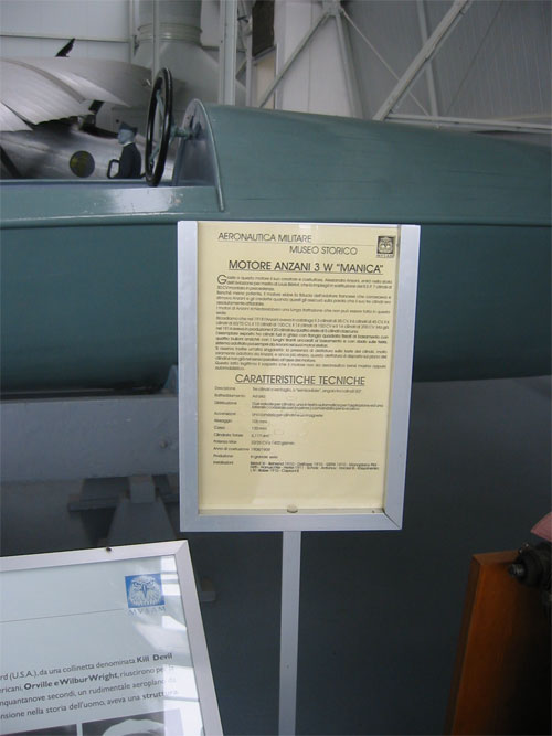 prima messa in moto del prototipo marzo 1910, 6 cilindri stellare (o radiale) fisso a doppia stella, cilindrata 4.580 cc, alesaggio 90 mm, corsa 120 mm, potenza 45 CV a 1.300 giri/min. a quota zero 1 valvola di aspirazione automatica e una valvola di scarico per cilindro, 1 candela per cilindro , raffreddamento ad aria, consumo circa 250 gr/hp-ora più altri circa 50 gr/hp-ora di olio a perdere, peso a secco 70 Kg. La stessa configurazione venne utilizzata anche per le versioni potenziate di 60 CV (alesaggio 105 mm X corsa 120 mm) e 80 CV (alesaggio 115 mm X corsa 120 mm) a 1300 giri/min con rispettivi pesi a secco di 90 e 115 Kg