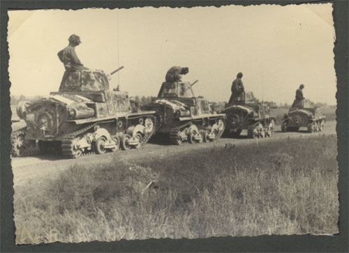 Alcuni L6 dei Bersaglieri arrivati da poco al fronte, in