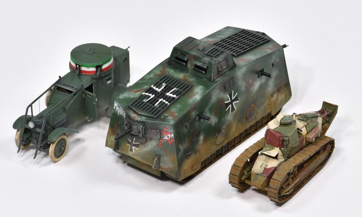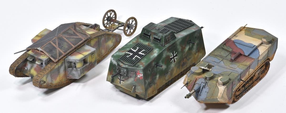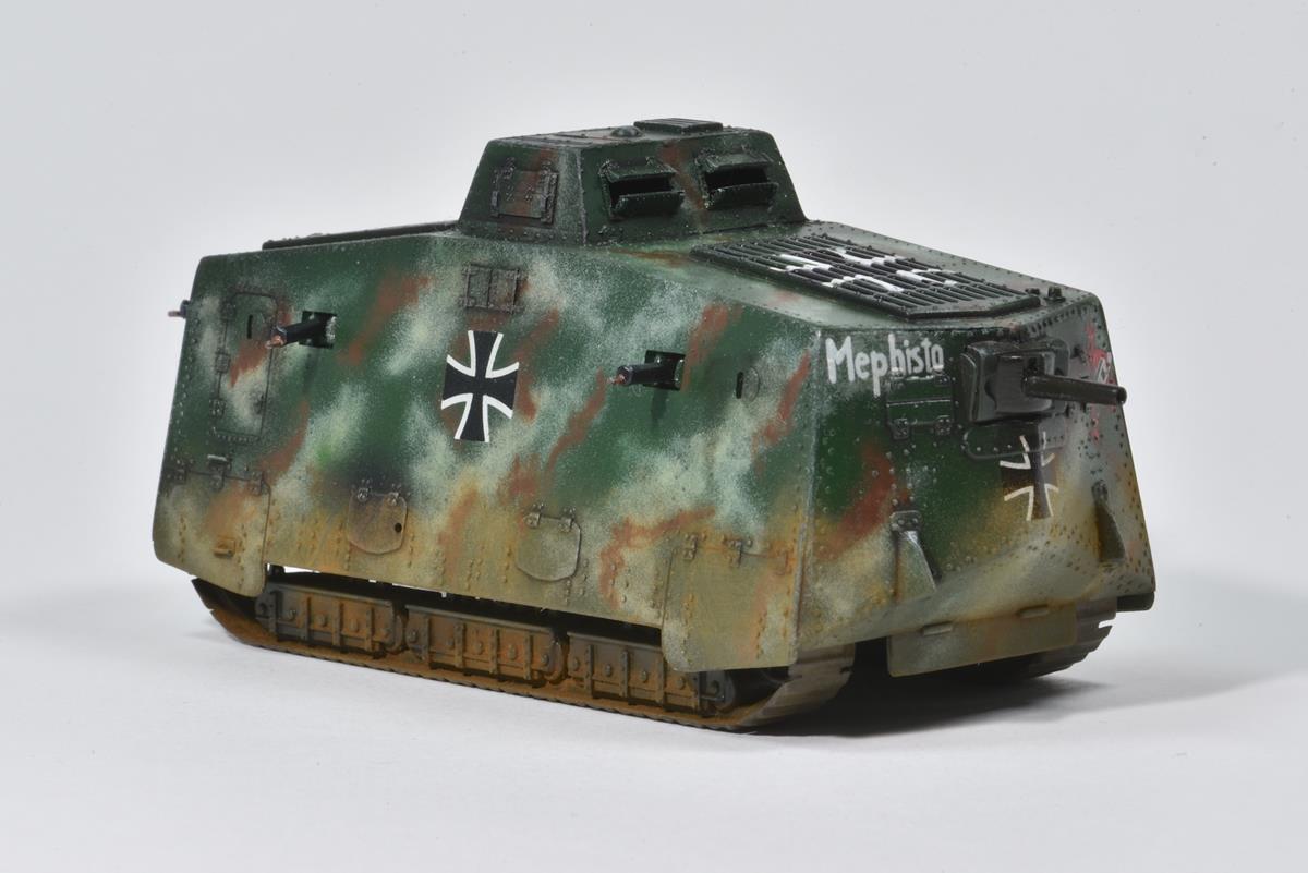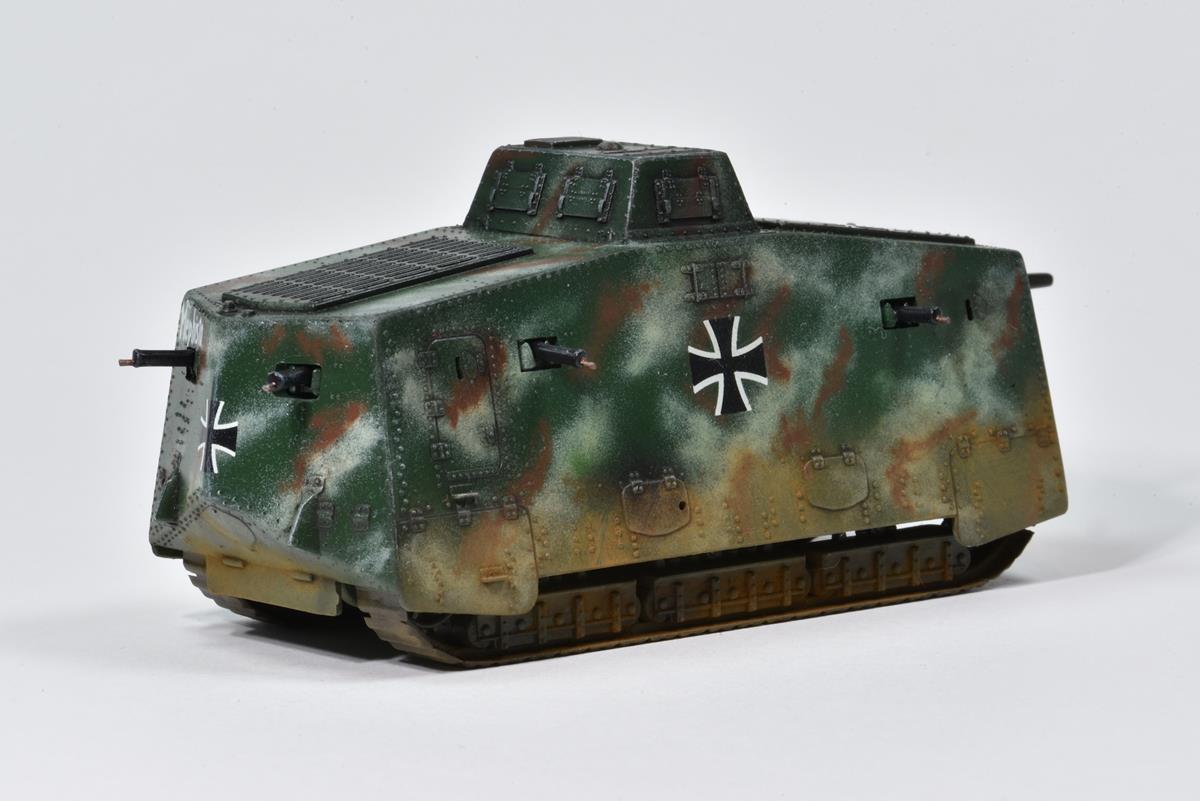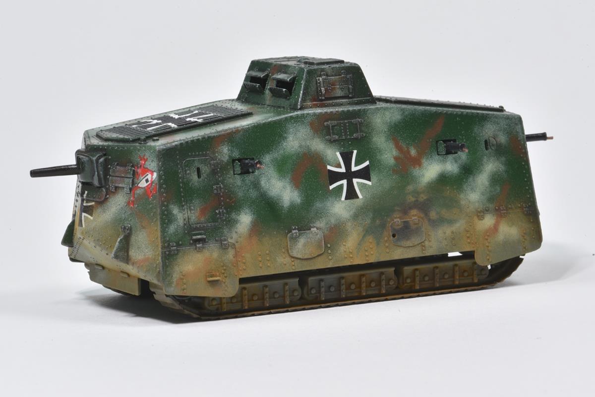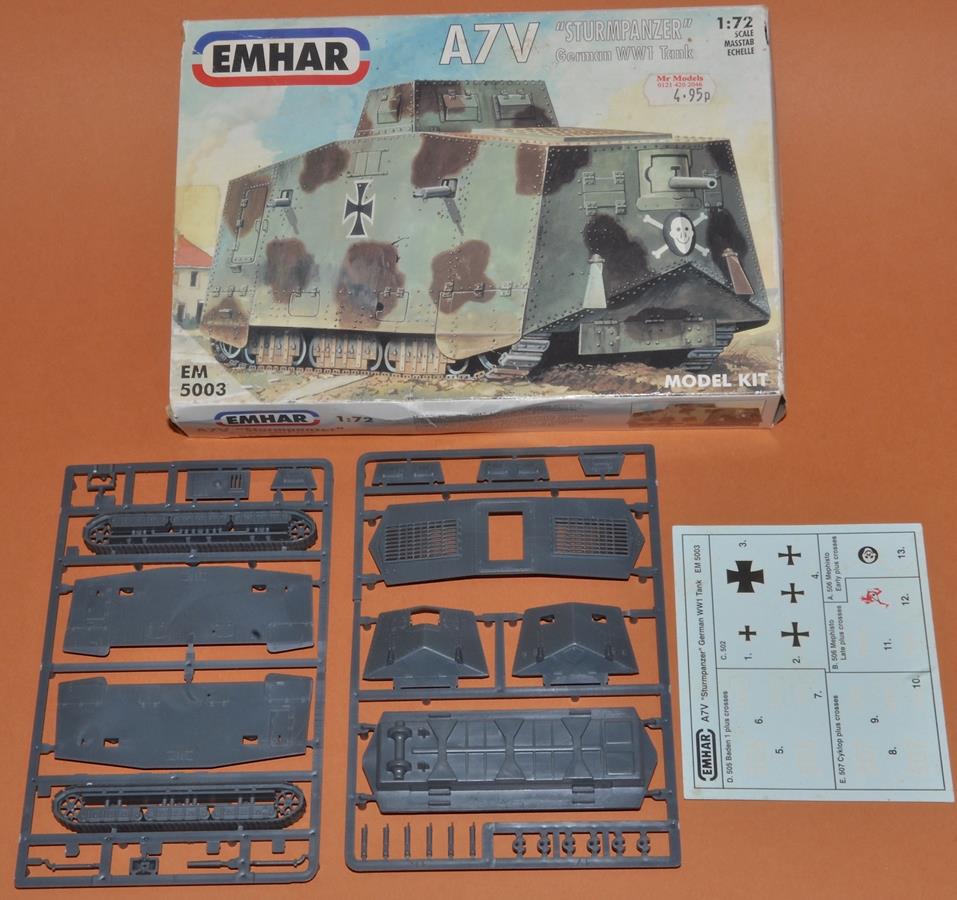 STURMPANZERWAGEN A7V - ALLEMAGNE 1918 - MAQUETTE EMHAR Construit à seulement 22 exemplaires, le A7V sera le seul char opérationnel réalisé en Allemagne pendant la grande guerre. Difficile à piloter, mal blindé, ses équipages vivaient un véritable calvaire à proximité du moteur. Une maquette simple et une bonne base pour un détaillage plus poussé que le montage rapide que j'ai réalisé.