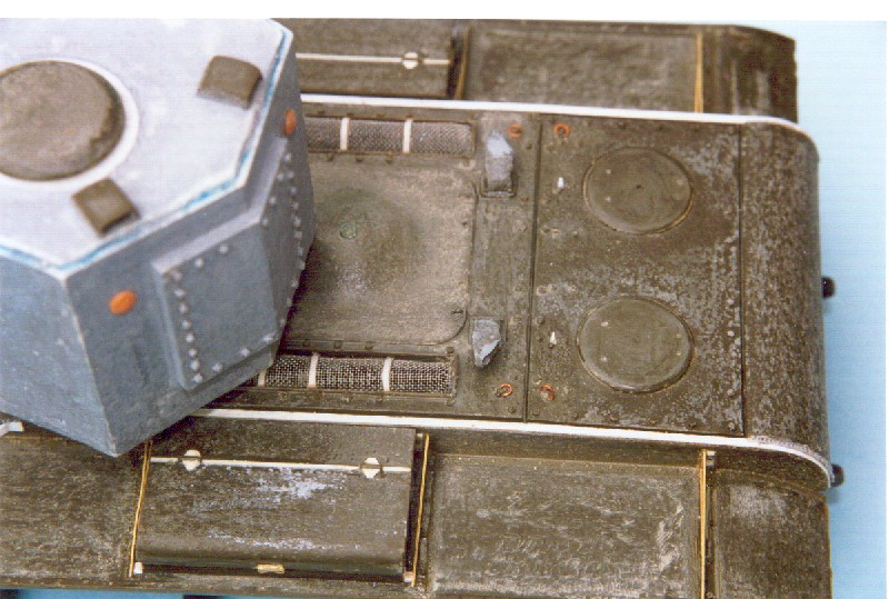 Un particolare che colpisce, guardando fotografie ravvicinate o meglio ancora, “incontrando” mezzi reali, è constatare come molte superfici di parti in fusione (casematte, torrette ecc.) siano poi mal riprodotte nei modelli, ovvero troppo lisce. La tipicità delle superfici rugose è ancora raramente inclusa negli stampi e per dire il vero anche molte corazze laminate, viste da vicino, non sono proprio lisce come il marmo. Ci sono molti metodi per riprodurre queste superfici, uno è quello di applicare colla liquida o trielina gradualmente alle parti che ci interessano, ottenendo una finitura leggera.