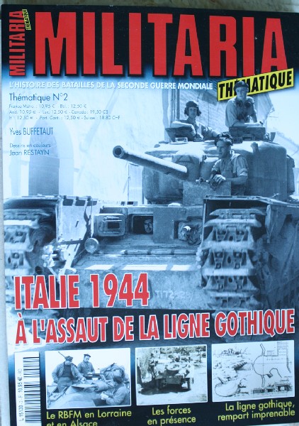 La collana Hors-Serie ci ha deliziato per diverso tempo con una combinazione ben riuscita di testi agili, fotografie chiare e ben stampate, cartine delle zone degli scontri e ben realizzati profili a colori dei mezzi. Di recente, una svolta ha introdotto la serie “Thematique” che ricalca la precedente ma che presenta per ogni fascicolo almeno un paio d’argomenti a scapito della organicità e della completezza. Quello dedicato alla “Linea Gotica” su 84 pagine ne ospita una cinquantina dedicate all’argomento che più ci interessa. La veste è quella di sempre e la qualità delle fotografie molto buona, purtroppo quelle inedite non sono moltissime. In compenso sono mantenute delle belle tavole a colori, in più troveremo diversi schizzi di fortificazioni tedesche e ( slurp !) alcune fotografie di torrette interrate, a nostro parere una delle ultime frontiere inesplorate del modellismo.